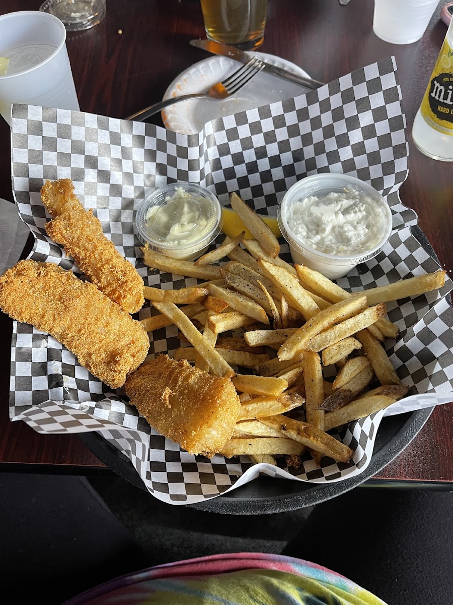 Services was outstanding. However was very disappointed with the Cod Dinner. Cod did not have the usual beer batter coatingvand flaky fish texture. This Cod was was tasteless with a like coating. Looked like boxed fish sticks. Fish was tough and actually had to use a knife to cut it. Friends were happy with Coconut Shrimp dinner.
